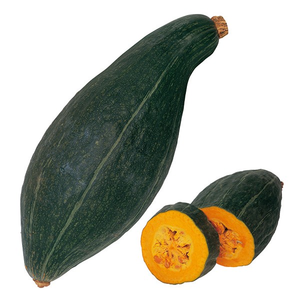 果皮が薄く包丁がスッと入りとても切りやすい。ホクホクした肉質で甘みが強く美味しい。長さ40cm、重さ2~3kg首長型で均等にスライスしやすく果肉も柔らかいので、煮付け天ぷらオーブン焼きなど幅広く調理しやすい。