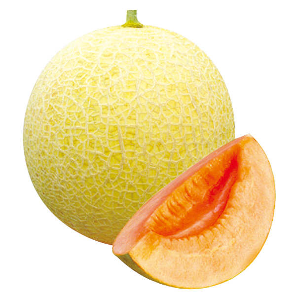 生育旺盛でうどんこ病・べと病に強く露地でも作れる赤肉ネットメロン。甘い香りとトロリとろける食感の果実は1~1.3kgで糖度14度程度。交配から43日程度、果皮が緑から黄色に変色すれば収穫。